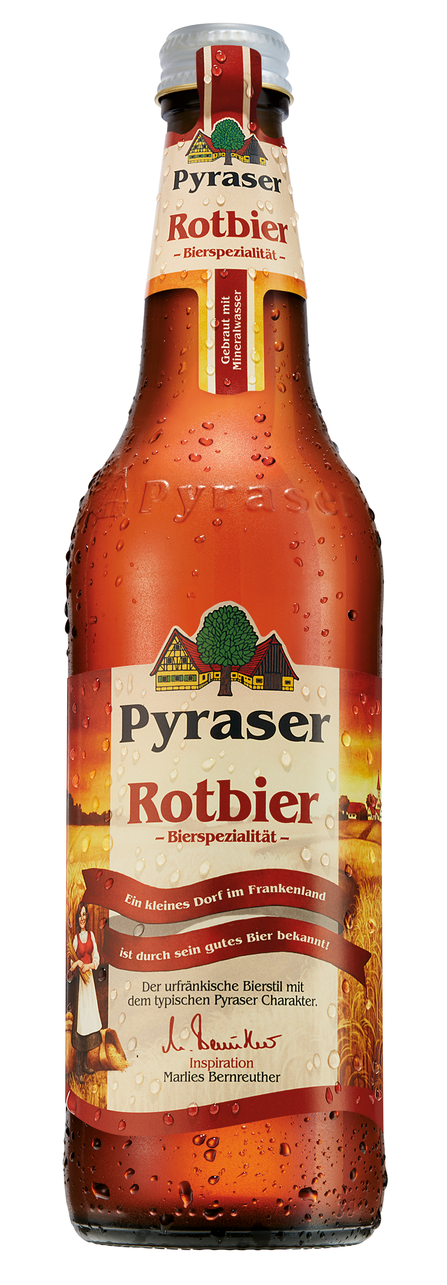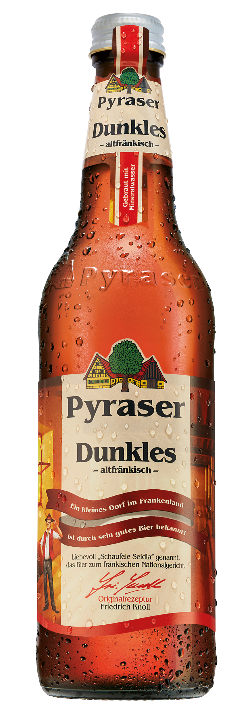 Appelée précédemment « la boisson de la joie », la bière brune « Dunkles » a eu un nom qui lui convenait bien pour accompagner les bons moments de convivialité. Avec 5,5 % d’alcool, elle fait partie des bières assez forte dans cette série de bières Pyraser. Une bière typique de la Franconie.